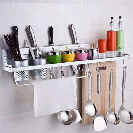 10 Hooks for hanging cook utensils like pots, pans, and dish towels